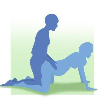 Buena parte del peso de la pareja recae sobre los brazos de ella. Para que esta postura resulte más agradable, es mejor apoyar las rodillas en un cojín.
