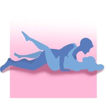 La mujer se tumba de lado, con las piernas extendidas o ligeramente flexionadas en ángulo, y la pareja se pone detrás de ella.